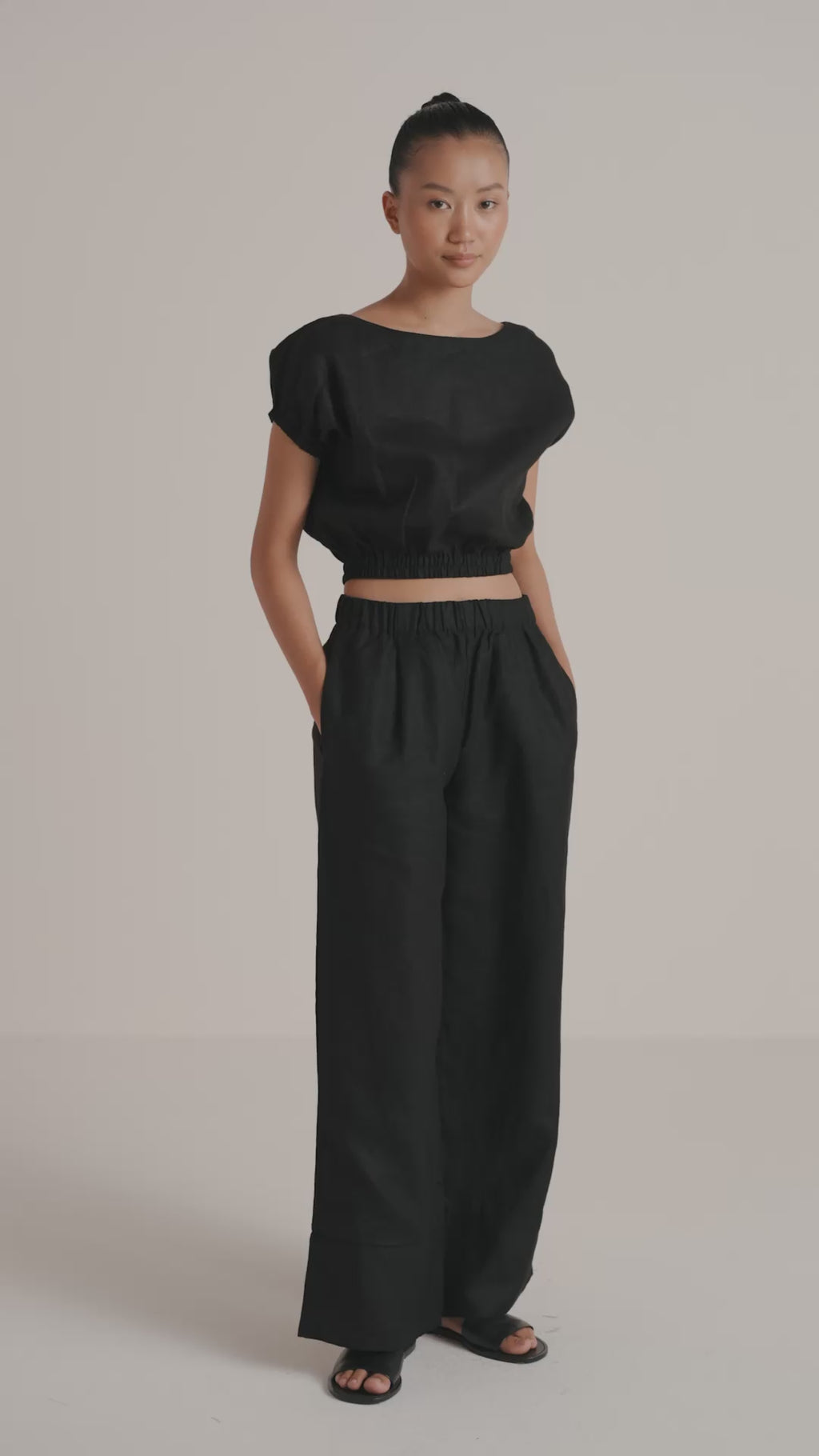 Effortless and elevated, the Easy Pant is crafted from breathable organic cotton-linen blend in classic black. Designed with a full-length silhouette, elasticated waistband, and side pockets, it offers all-day comfort without sacrificing style. The relaxed fit makes it perfect for everyday wear, while the refined textile adds a polished touch. Pair it with the matching tops for a versatile, timeless look.