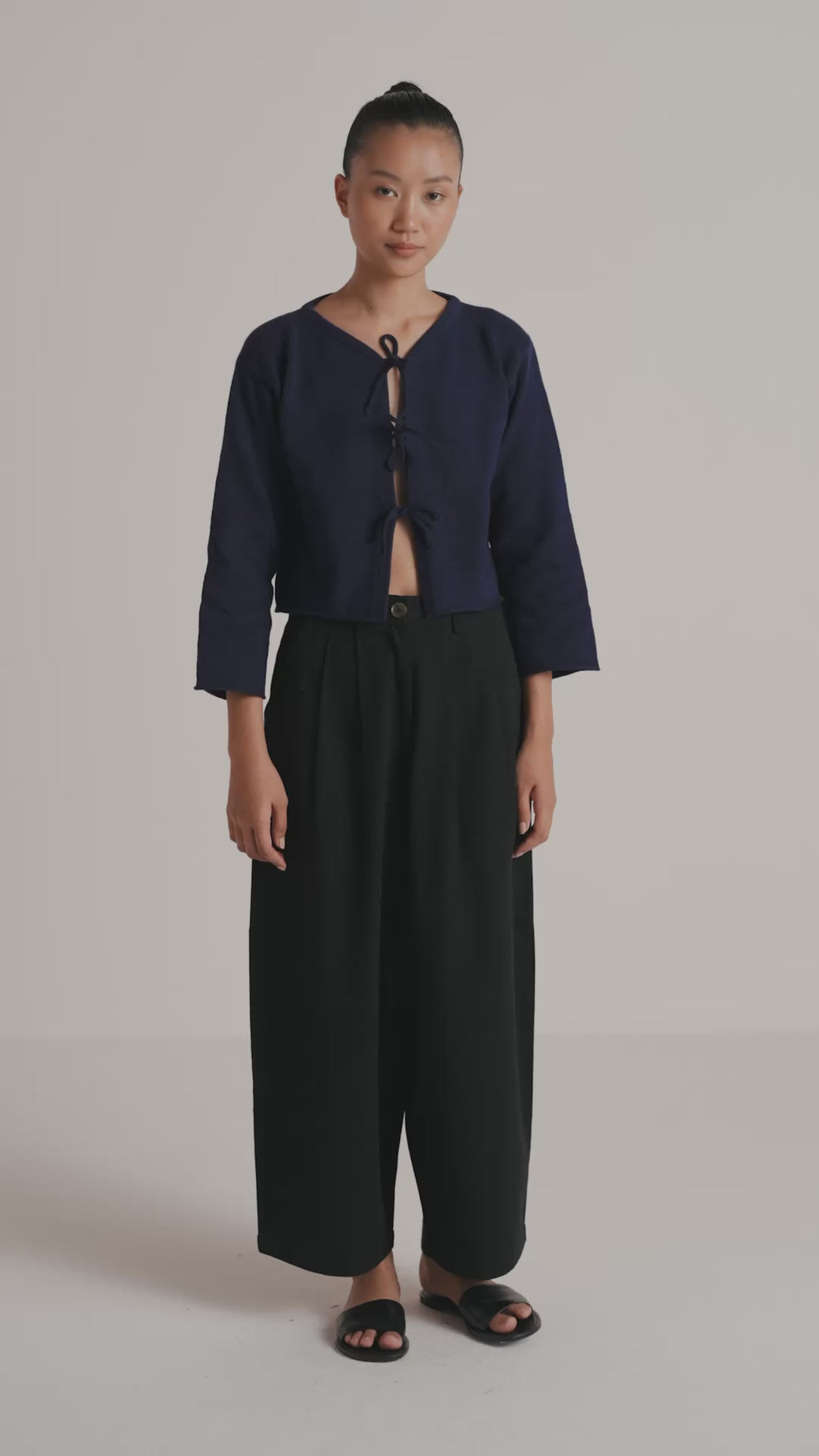 Lightweight and feminine, the Tie-Front Cardigan is hand-knit from soft, breathable Peruvian cotton. Featuring ¾ sleeves, a cropped boxy silhouette, and delicate front ties, it’s the perfect blend of comfort and charm. Wear it on its own for a sweet, simple look or layer it over your favorite tank or blouse for added texture and ease. A versatile staple for effortless, everyday styling.