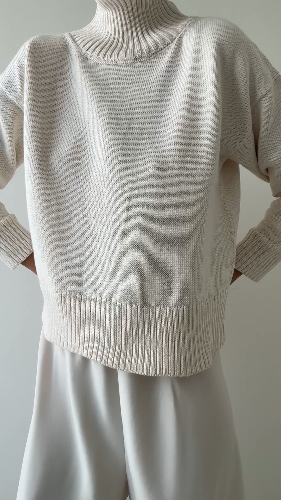 Back by popular demand, this coveted sweater is crafted from ultra-soft Peruvian cotton for ultimate comfort. Its soft, relaxed silhouette and deliciously ribbed mock neck make it your go-to piece for staying cozy and stylish all season long.